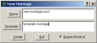 Double-clicking on a Windows link whose target is the program, MONTAGE3.EXE, as opposed to a specific metafile, opens a default metafile named MONTAGE.MO3 in the specified initial directory. If no such montage already exists, a new, empty one is created.